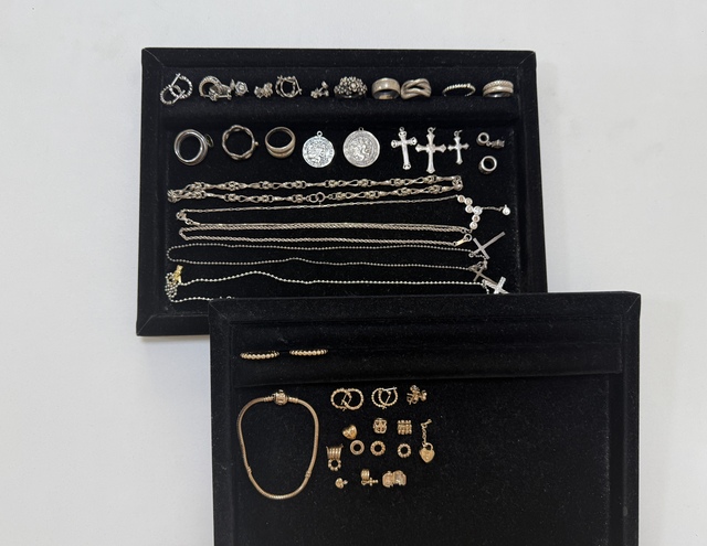 当店では、付属の宝石やデザイン性、ブランドジュエリーなど、本来であれば査定対象にならない部分を含めた「製品としての価値」を上乗せして査定いたします。ゴールドバーやプラチナバーはもちろんのこと、金縁メガネや金歯も高価査定の対象です。